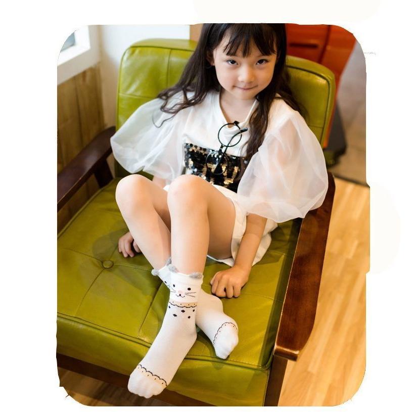 靴下 5枚セット キッズ クルーソックス 猫 Cat 耳付き イラスト