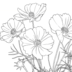 コスモス3 コスモス キキョウ 桔梗 秋の花 無料 白黒イラスト素材
