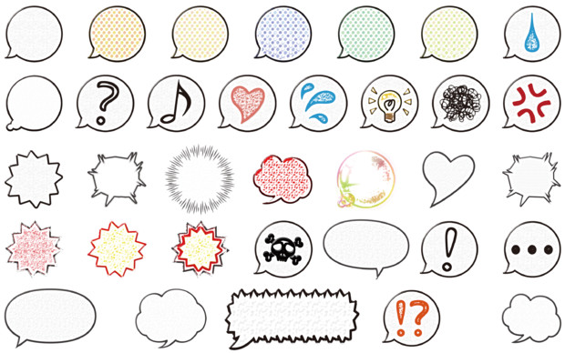 漫画風手描き素材 文字 ふきだし アイコン のイラスト素材