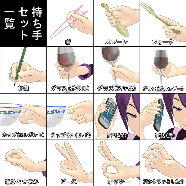 ポーズ一覧 けれども使い勝手悪いモノ 同包 手 夕凪 さんの