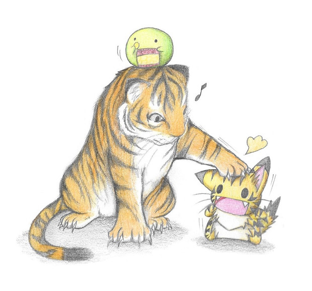 にゃんこにじゃれる虎 わにねこwithくまこ さんのイラスト
