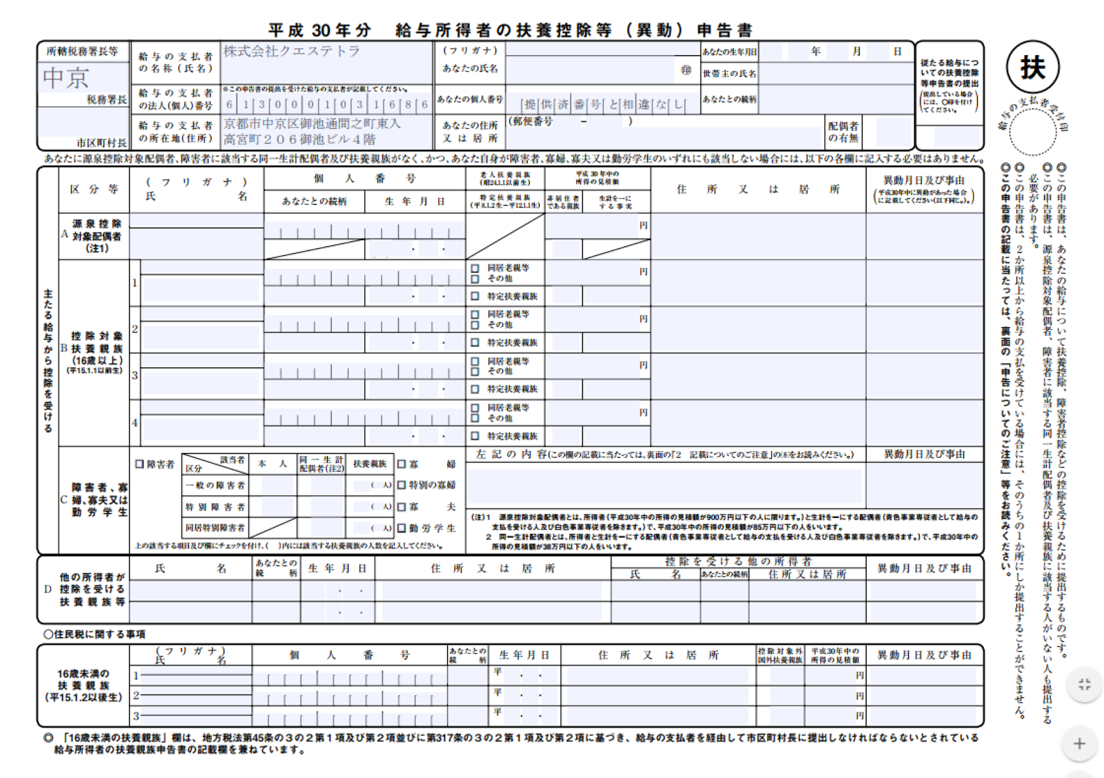 平成31年 2019年 分の給与所得者の扶養控除等 異動 申告書が掲載されました J Musu No Blog
