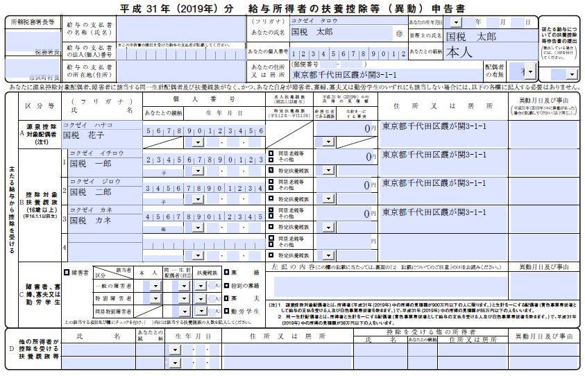 平成31年分給与所得者の扶養控除等 異動 申告書の書き方 記入例つき Zeimo