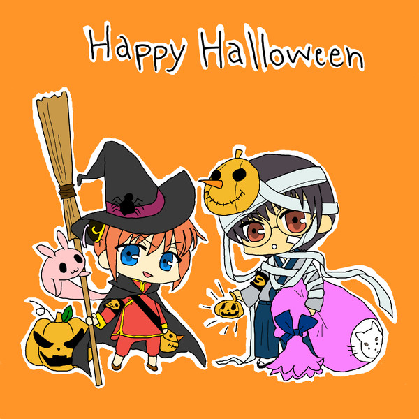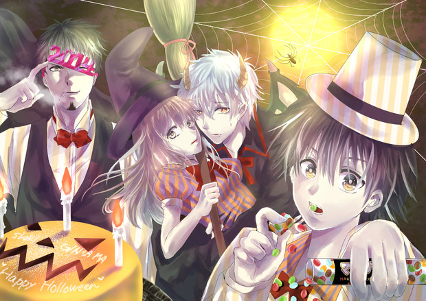 Gintama Trick Or Treat Gintama Halloween Sakata Gintoki Kagura Shinpachi Gintama 銀魂 公式 銀魂 イラスト 魂