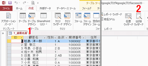 Access 2016 はがきウィザードを使用してレポートを作成するには
